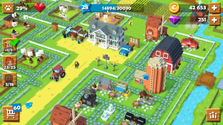 Enter the charming world of Blocky Farm where you can manage your lands, take care of animals, harvest fields, deliver goods to the town and create friendship with citizens. Create a big farm of your dreams! Start your village life today!