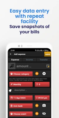 - The application lets you schedule your re-occurring expenses and incomes so that you do not have to add them manually each time