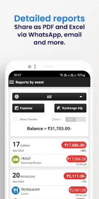 You can track your expenses in the form of daily, weekly, monthly or annual reports and export the reports in PDF or Excel format.
