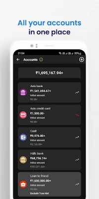 - You can add your accounts and cards and get detail expense report on your spending for each of your accounts in daily, monthly, yearly or item wise
