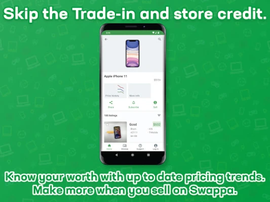 Skip store credit. Ditch the gift cards. Sellers make more on Swappa. Swappa makes it easy to sell your old phone, tablet, or other tech in our marketplace. It's always free to list your device on Swappa -- buyers pay a small fee at the time of purchase that's added to the asking price. And when your device sells, cash gets deposited into your PayPal account quickly. Use our real-time data to see pricing trends and what other devices have recently sold for.